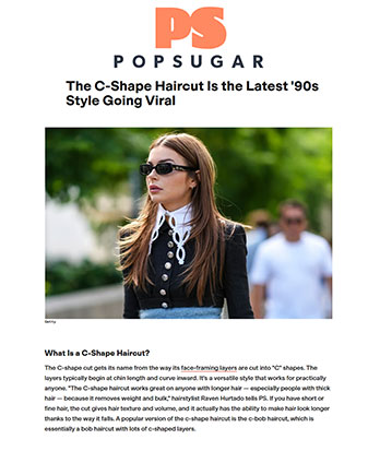 The C-shape cut gets its name from the way its face-framing layers are cut into "C" shapes. The layers typically begin at chin length and curve inward. It's a versatile style that works for practically anyone. "The C-shape haircut works great on anyone with longer hair — especially people with thick hair — because it removes weight and bulk," hairstylist Raven Hurtado tells PS. If you have short or fine hair, the cut gives hair texture and volume, and it actually has the ability to make hair look longer thanks to the way it falls. A popular version of the c-shape haircut is the c-bob haircut, which is essentially a bob haircut with lots of c-shaped layers.