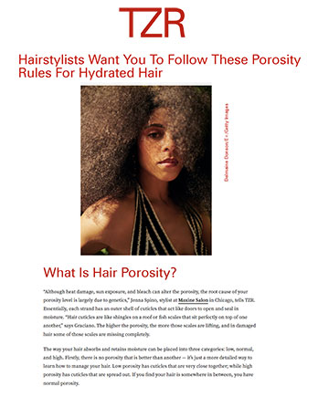 Understanding hair porosity is great for all hair types but especially necessary for curls, where coils and spirals make it difficult for product and moisture to travel from root to tip. Ahead, TZR spoke to a few hairstylists to get the full scoop on determining your porosity and finding a routine to satisfy your hair’s unique needs. They are even taking out the guesswork by sharing their favorite products for each type.