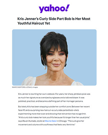 But lately, Kris has been stepping outside her comfort zone. Between her recent face lift and a surprising new haircut—a curly side-parted bob—she’s experimenting more than ever and showing that reinvention has no age limit. "Kris’s curly bob makes her look youthful because it’s longer than her usual pixie," says Raven Hurtado, stylist at Maxine Salon in Chicago. "The curls give her movement and volume with a softness that feels very feminine."